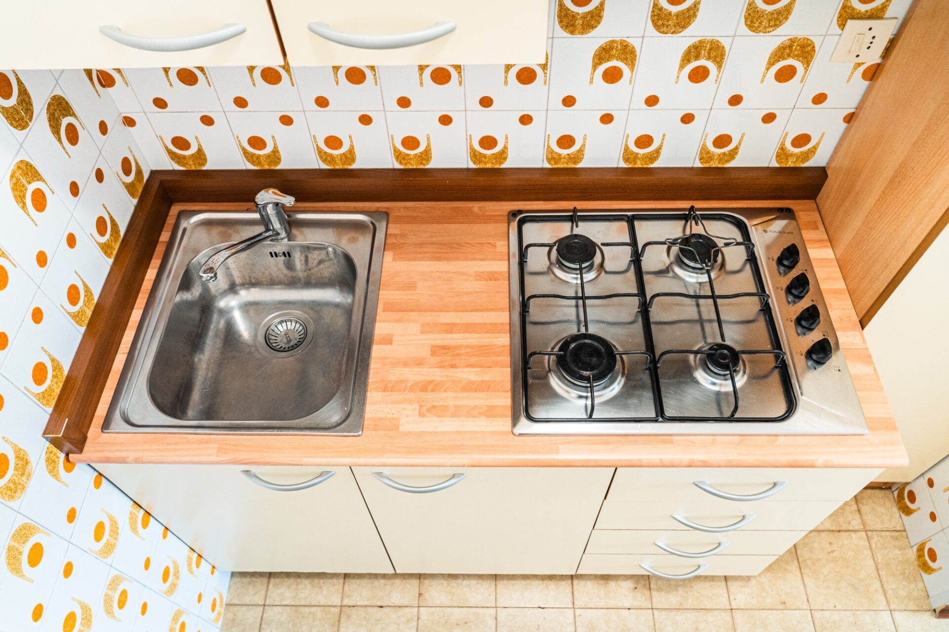 Drei-Zimmer Wohnung am Erdgeschoss verfügt über: Schlafzimmer mit Doppelbett, Schlafzimmer mit zwei Betten, Wohnzimmer mit Doppelschlafcouch, kochecke, Badezimmer, Garten mit Kamin und Parkplatz.